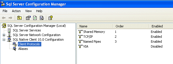 Начиная с MS SQL Server 2000, появилась возможность подключения к серверу при помощи нескольких протоколов, например, сначала пытаемся подключиться через Shared Memory, если не получилось, то через TCP/IP, и в последнюю очередь через Named Pipes. Для определения порядка использования протоколов используется свойство Order.