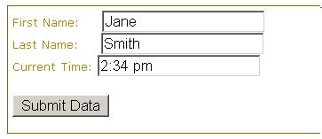 В этом примере форма страницы XHTML содержит текстовое поле для имени и фамилии пользователя. Также кодируется скрытое поле, в которое заносится с помощью функции PHP date() текущие дата и время. Когда нажимается кнопка отправки формы, создается новый текстовый файл 'formfile.txt' и открывается в режиме добавления: