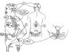 Проведенный в главе 7 анализ анатомических субстратов внутренних ходов основных каналов китайской медицины убеждает, что они, как и мышечно-сухожильные меридианы, могут быть представлены вполне осязаемыми материальными субстратами. Из рассмотренных схем становится ясно, что ни один из меридианов не способен претендовать на уникальность своего внутреннего хода. Одни и те же участки висцерофасциальных связей неоднократно используются разными канальными системами в различных комбинациях. По существу мы имеем дело с единой сетью внутриполостных межорганных «ходов», которые в определенных местах на туловище приближаются к поверхности и могут контактировать со скелетными мышцами, инициируя миотатические синкинезии (рис. 81).
