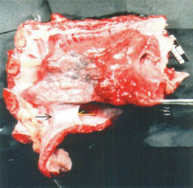 Рис. 83. Спайки между диафрагмой и висцеральной плеврой лёгкого по О.С. Мерзенюку [143].