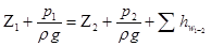 Сумарну втрату напору в загальному випадку виражають формулою: