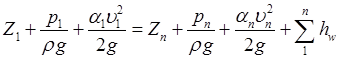 Якщо простий трубопровід складається з „п” послідовно з’єднаних ділянок різних діаметрівто рівняння Бернуллі для початкового і кінцевого перерізів набуває форми