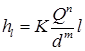 Q-витрата води; n i m – показники степеня.