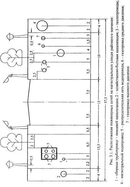 Магистральные сети общегородского, районного значения следует размещать в соответствии с комплексными схемами водоснабжения, канализации, энергоснабжения, а также телефонизации, радиофикации и диспетчеризации, разрабатываемыми в увязке с проектами планировки и застройки городов, жилых районов и микрорайонов. В комплексные проекты застройки и планировки необходимо включать разделы размещения инженерных сетей на улицах, проездах и межмагистральных территориях.