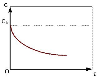 Проинтегрируем последнее уравнение в пределах от С0 (при τ = 0 ) до С (в произвольный момент времени τ)