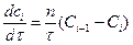 Параметром, характеризующим данную модель, является число ячеек n. Математическое описание ячеечной модели включает n линейных дифференциальных уравнений первого порядка