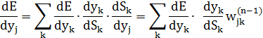 Тут додавання за k виконують серед нейронів шару n+1. Вводячи нову змінну