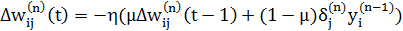 Інколи для надання процесу корекції ваг деякої інерційності, що згладжує різкі стрибки під час переміщення поверхнею цільової функції, вираз (4.6) доповнюється значенням зміни ваги на попередній ітерації: