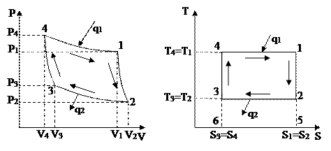 4-1—ізотермічне підведення q1 від верхнього джерела теплоти до термодинамічної системи.
