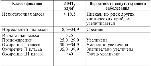 Таблица 12-6.Классификация избыточной массы у взрослых в зависимости от индекса массы тела (в соответствии с докладом ВОЗ 1998 г.)