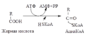 1) этот процесс начинается с активирования жирных кислот за счет АТФ и HSKoA: