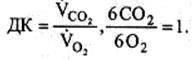 Оцінюючи кількість виділеного СО2 порівняно з кількістю спожитого О2, ми встановимо, що ДК дорівнює 1,0: