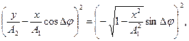 Рівняння (24) є рівнянням траєкторії результуючого коливання точки С. Це рівняння є еліпсом, осі якого повернуті відносно осей x і y. Орієнтація еліпса і величина його півосей залежить від амплітуд