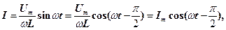 2. Розглянемо випадок, коли змінний струм тече через котушку індуктивностіL, в цьому випадку резистор R і ємність С в колі відсутні(рис. 6,а ).