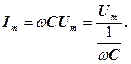 Порівнюючи вирази (25) і (26) приходимо до висновку, що спад напруги Uс відстає за фазою від струму, який тече через конденсатор, на π/2. Це показано на векторній діаграмі (рис. 7, б).