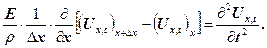 Для виведення цього рівняння скористаємось рівняння плоскої хвилі, яка поширюється в напрямку осі х. Розглянемо ділянку пружного середовища, яке характеризується модулем пружності Е (рис. 2). З рисунка видно, що виділений елемент має переріз S і довжину Δх. Під дією зовнішньої сили F виділена ділянка пружного середовища деформується на величину ΔU.