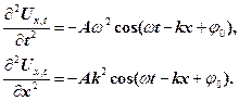 Знайдемо другі частинні похідні за часом t і координатою х від рівняння (16)