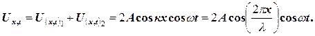показує, що в точках середовища виникає коливання з тією ж частотою ω, що і коливання зустрічних хвиль.