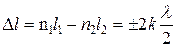 двох хвиль вкладається непарне число півхвиль, то вони гасять одна одну, тобто спостерігається мінімум інтерференції