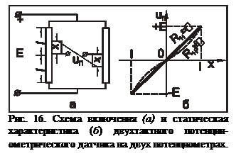 , соединенных по мостовой схеме (рис.17, а). Движку потенциометра