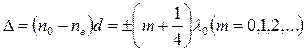Після проходження пластинки завтовшки d між звичайним і незвичайним променями виникає різниця ходу