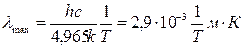 де b – постійна Віна, її експериментальне значення дорівнює 2,9 · 10-3 мК.