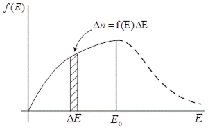, то заштрихована площа визначає число електронів з енергією в цьому інтервалі, а електронів, енергії яких більші за