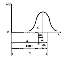 З рис. 4 видно, що оцінка істинного значення м[х] відрізняється від істинного значення X на деяку Δт, котра є математичним сподіванням похибки вимірювання. Знайдемо математичне сподівання похибки вимірювання