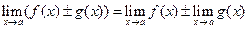 Границя суми (різниці) двох функцій дорівнює сумі (різниці) їх границь, якщо границі доданків існують