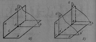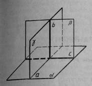 На малюнку 44, а ви бачите дві перпендикулярні площини α і β, що перетинаються по прямій с. Площина γ, перпендикулярна до прямої с, перетинає площини α і β по перпендикулярним прямим а і b.