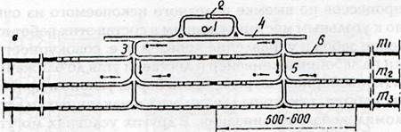 Рис. 6.15. Групповая подготовка с доставкой на двусторонний (в) промквершлаг: