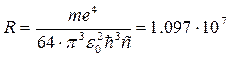 Формула (1.4.22) називається формулою Бальмера. У цій формулі вираз перед дужками є сталою величиною, яку називають сталою Рідберга. Стала Рідберга R розрахована з великою точністю. Її величина дорівнює