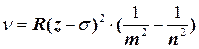 де R ― стала Рідберга в с-1; m і n ― номери числа рівнів, між якими здійснюється перехід електрона; s ― стала екранування, яка зберігає своє значення в межах даної серії для всіх елементів. Для К-серії s =1; для L- серії s =7.5 і т.д.