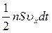 Якщо концентрація молекул дорівнює n, то їх число в об’ємі виділеного циліндра буде дорівнювати nSυxdt. Але з цього числа молекул лише половина рухається вбік стінки, а інша половина рухається у протилежному напрямку і зі стінкою не стикається. Отже, число зіткнень молекул із площадкою S за час dt буде дорівнювати