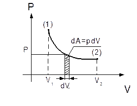 При розширенні газу виконана робота позитивна, при стисненні – негативна. У загальному випадку при переході з деякого початкового стану (1) у кінцевий стан (2) робота газу визначається формулою:
