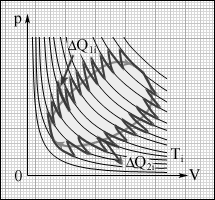 Для того щоб такий складний цикл провести зворотним шляхом, необхідно робоче тіло приводити в тепловий контакт із багатьма тепловими резервуарами з температурами Ti. Відношення ΔQi / Ti називається приведеним теплом.