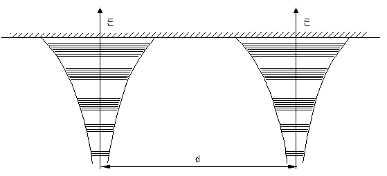При наближенні двох валентних електронів на відстань d<10-9 м потенціальний бар’єр валентних електронів знижується (рис. 2.27)