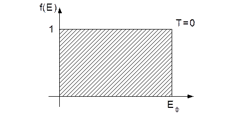 Проте рівні з енергіями Е<Еф при Т=0 заповнені з імовірністю, рівною одиниці.