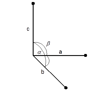 Елементарна кристалічна ґратка має форму паралелепіпеда, який побудований на ребрах а, b, c з кутами між ними a, b і g, що називаються параметрами ґратки (рис.34). Елементарні кристалічні ґратки діляться на: