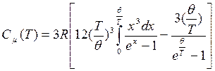 Згідно з теорією Дебая молярна теплоємність для широкого інтервалу температур від нуля до температупи Дебая визначається за формулою