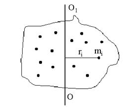 Моментом інерціїтвердого тіла відносно осі обертання називають фізичну величину, яка дорівнює сумі добутків мас всіх матеріальних точок твердого тіла на квадрат їх відстаней до осі обертання (рис.4.1)
