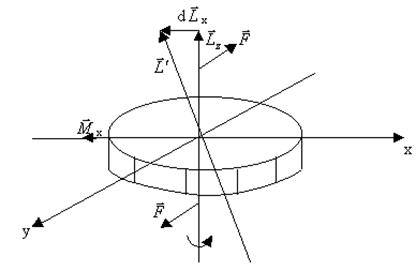 призводить до повертання гіроскопа відносно осі х. Напрям моменту сил