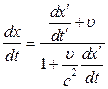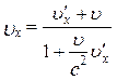 ®c, тоді швидкість цієї точки відносно спостерігача, який перебуває в стані спокою у не штрихованій системі буде дорівнювати: