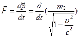 Релятивістський закон динаміки (другий закон Ньютона) матиме вигляд:
