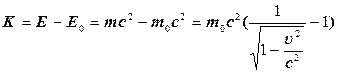 Кінетичну енергію руху легко визначити, якщо від повної енергії тіла відняти енергію спокою цього тіла, тобто