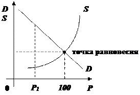 Соответствующая точка пересечения E — точка равновесия P : P = 100; при P < 100 D(Р) > S(P) — на рынке наблюдается дефицит;