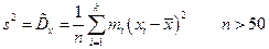 Статистическая оценка для дисперсии для сгруппированных данных: