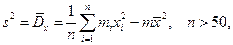 Если объем выборки < 50 ед (n < 50), то для получения несмещенной оценки дисперсии деление осуществляется не на n, а на (n – 1), т. е. имеют следующее соотношение:
