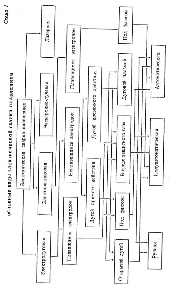 В зависимости от характера источника нагрева и оплавления сопрягаемых поверхностей сварку плавлением можно разделить на следующие виды сварки (смотреть схему 1.):