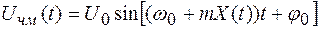При фазовой модуляции (ФМ) в зависимости от информационного сигнала Х(t) заменяется фаза φ0 несущего сигнала: